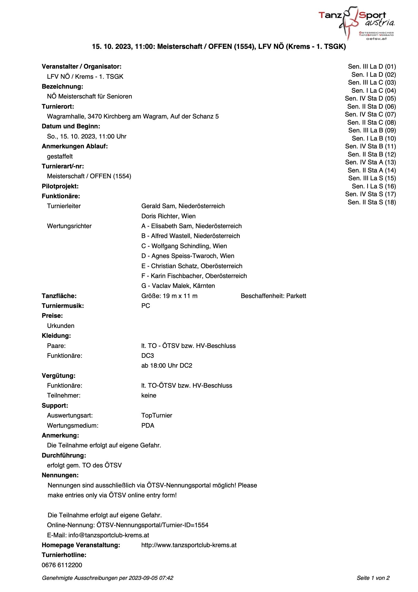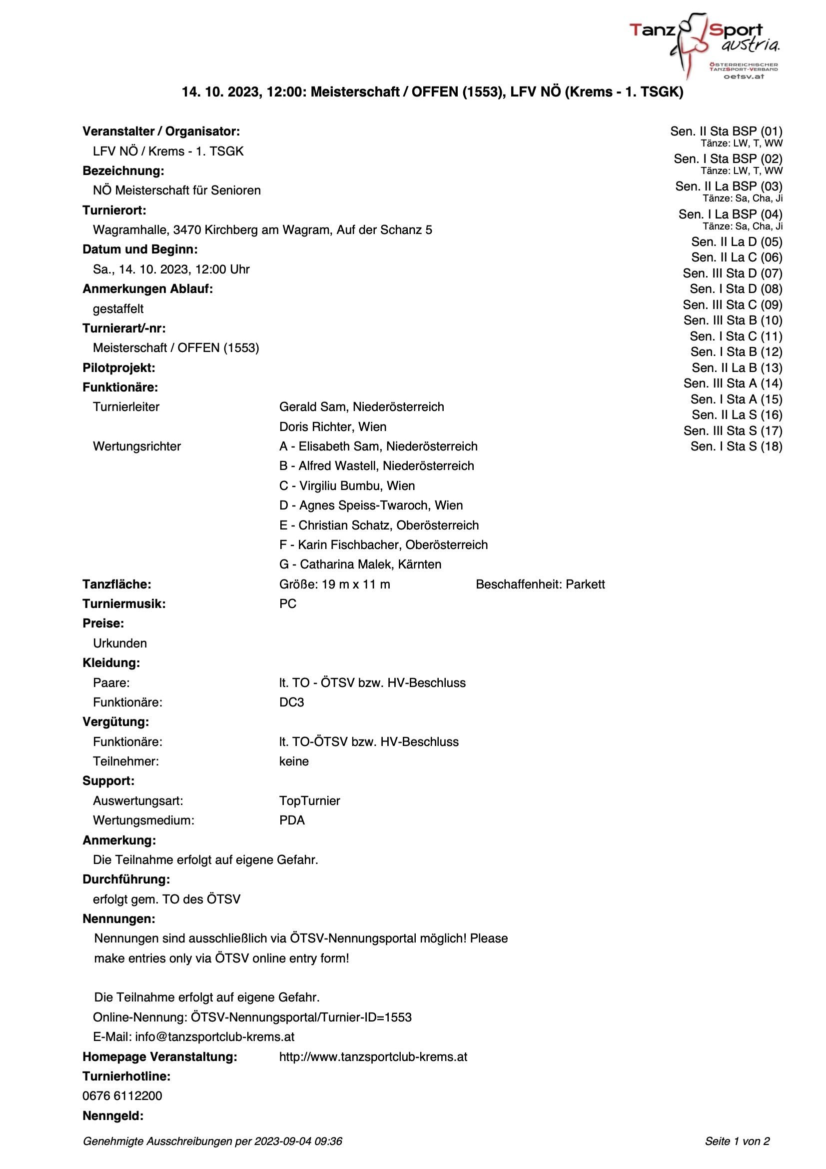 Zur Zeit sind nur die Turnierausschreibungen verfügbar. Sobald ein Zeitplan verfügbar ist, ist er hier einsehbar.